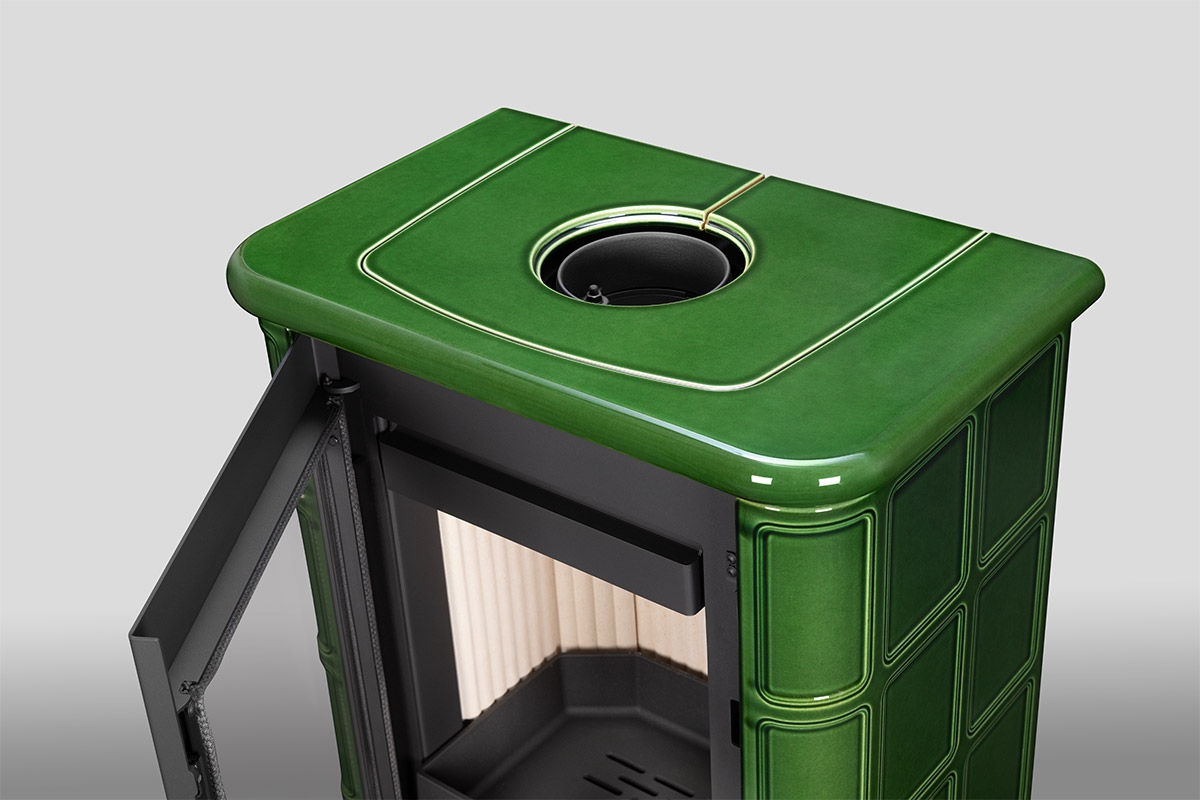 Piece kominkowe SIENA N zostały zaprojektowane w całości z kafli ceramicznych, co podkreśla zarówno ich unikalny styl, jak i funkcjonalność. Kafle te są dominującym elementem designu, dzięki czemu doskonale wpisują się w klasyczne aranżacje wnętrz. Zaokrąglone linie oraz harmonijne proporcje nadają im niepowtarzalny charakter. Dostępne są w trzech najpopularniejszych odcieniach błyszczącego szkliwa, typowych dla tego typu pieców.
